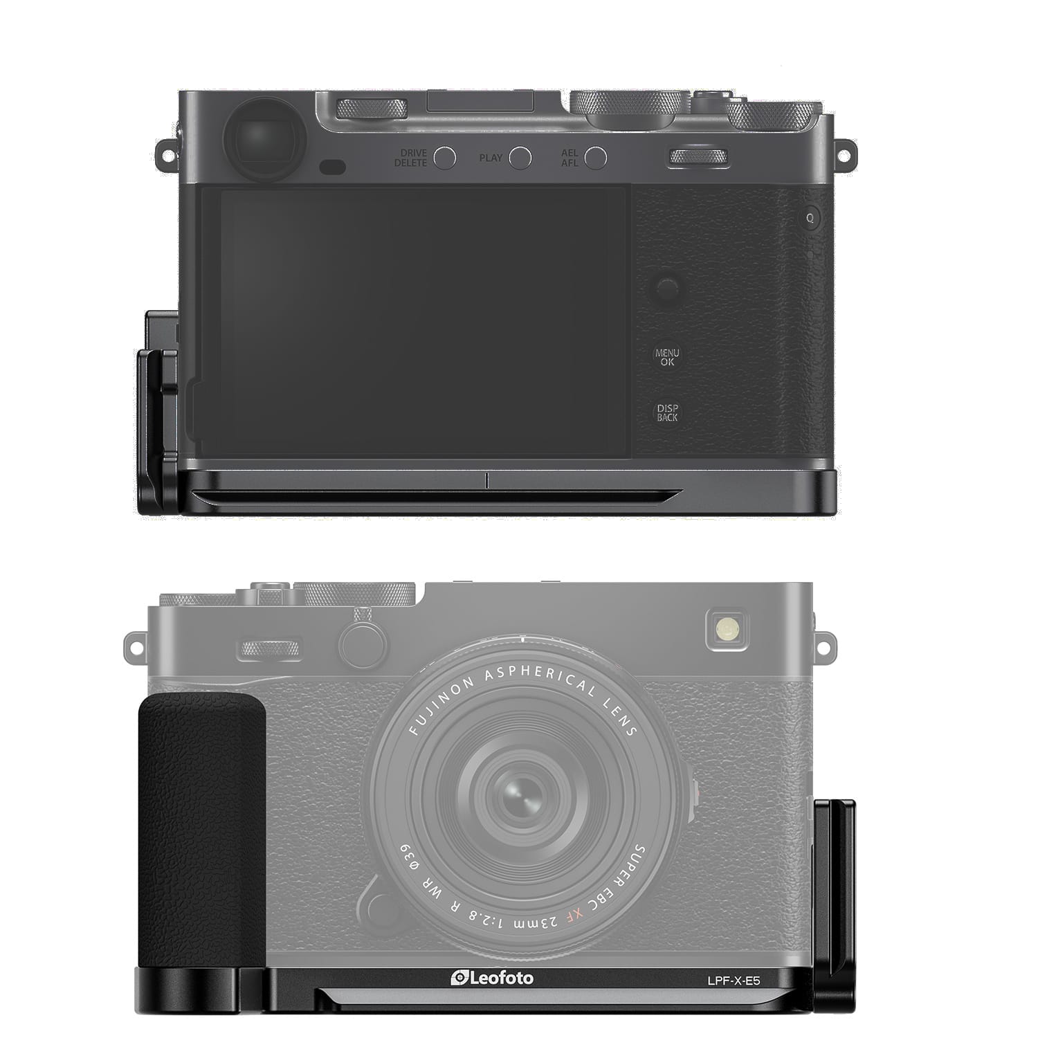 Das ständige An- und Abschrauben einer Wechselplatte entfällt, denn Ihre Kamera ist damit immer bereit für die Montage am Stativ. Durch die ergonomisch gummierte Grifferweiterung haben Sie Ihre Kamera besser im Griff. Die LPF-X-E5 Bracket verfügt über eine normierte 1/4 Zoll Gewindeschraube, für die Montage unten an der Kamera. Durch eine Magnethalterung ist ein funktionelles Werkzeug sowie diverse Anschlussmöglichkeiten in der Bodenplatte integriert.