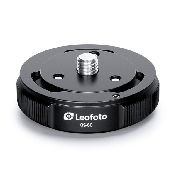 Die Basis des QS-60 Satzes kann an jeder 3/8 Zoll Schraube montiert werden. Drei Schrauben verhindern ein versehentliches Verdrehen. Der Aussendurchmesser des QS-60-Schnellwechselsatzes beträgt 60mm. Die innere Wechselplatte hat einen Durchmesser von 42mm. Damit Sie schnell zwischen unterschiedlichen Köpfen und/oder Mittelsäulen etc. wechseln können, sind zusätzliche Wechselplatten (Q60) separat bei uns erhältlich.